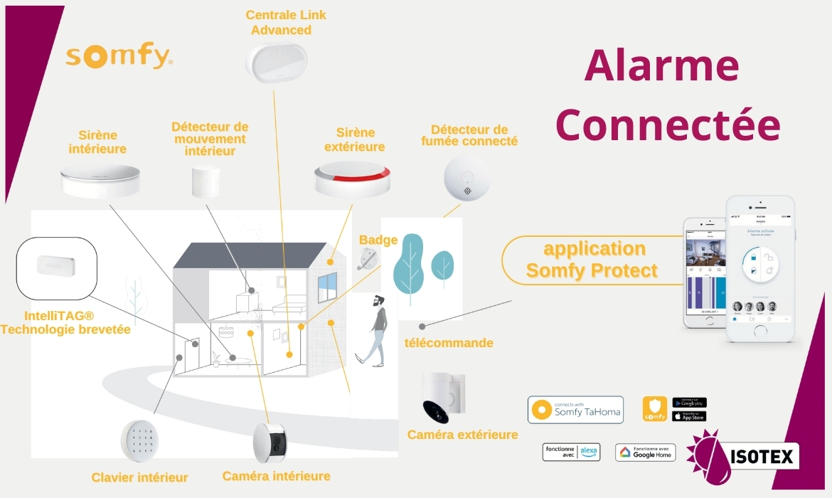 . Détection Précise : Équipée de détecteurs de mouvement Somfy et de détecteurs anti intrusion Intellitag Somfy, cette alarme détecte les mouvements suspects avec une précision inégalée.