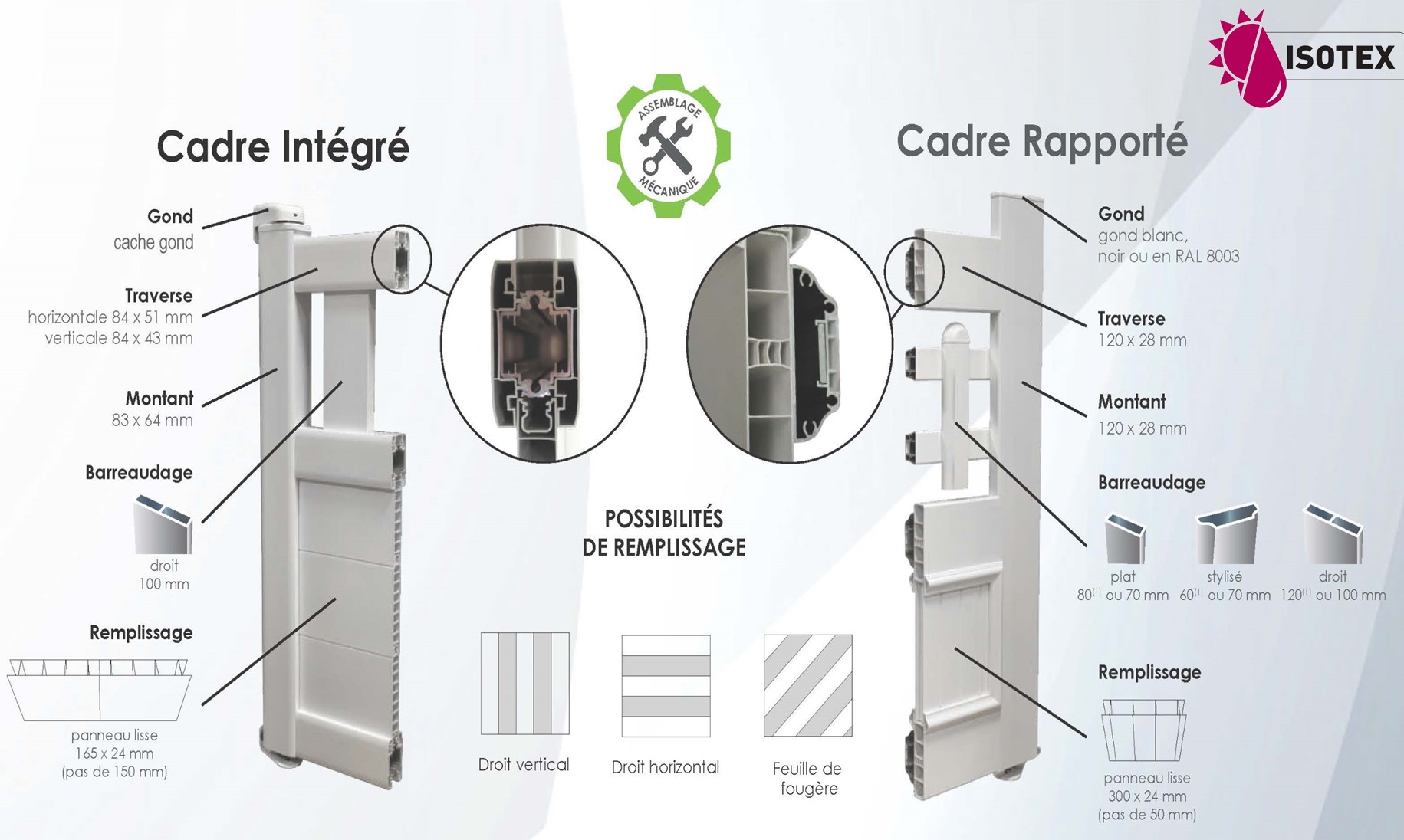 - Modularité : Le portail à cadre intégré autorise toutes les libertés en matière de formes et de remplissages grâce à un concept technique optimisé.
