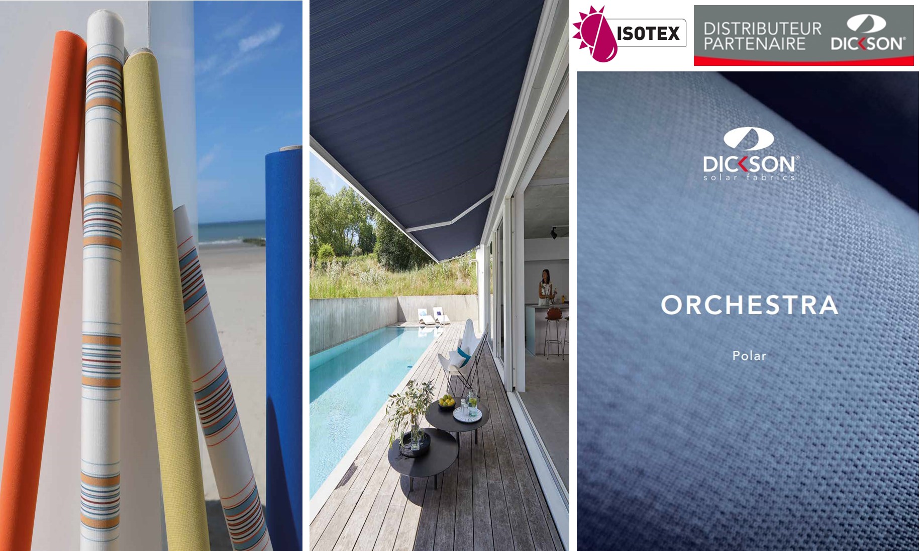 La référence en matière de protection solaire. Les toiles Dickson vous garantissent une protection maximale contre les U.V., la chaleur, la luminosité et les intempéries. Réalisation sur mesure. Isotex, distributeur partenaire Dickson.