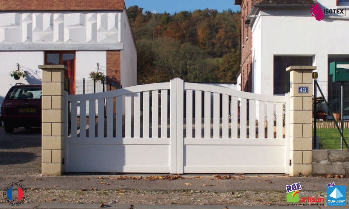 Portails PVC sur mesure alliant légèreté, durabilité et fabrication française. Esthétiques et sans entretien, ils s’adaptent à tous les styles en Isère et région Rhône-Alpes.