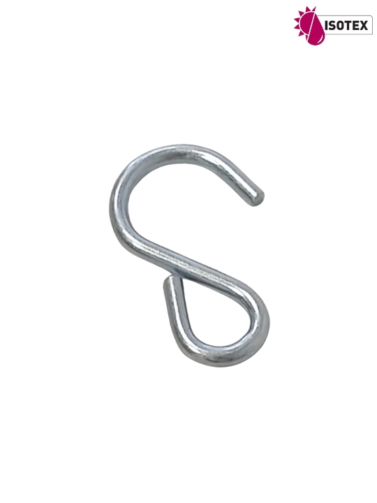 Crochet S fermé en acier zingué (L 50 mm, S 4 mm) – Idéal pour fixer solidement vos voiles d’ombrage, bâches et toiles extérieures. Résistant à la corrosion, facile à installer. EN STOCK chez votre fabricant de Bâche et de voile d'ombrage à Bourgoin.