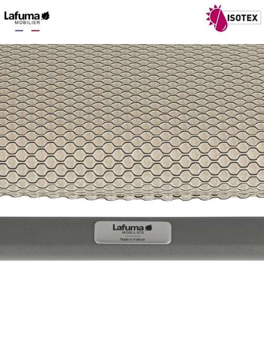 Structure : tube aluminium trilobé Ø30 mm, légère, résistante et anti-corrosion. Peinture 100% polyester haute tenue aux UV. Coloris titane