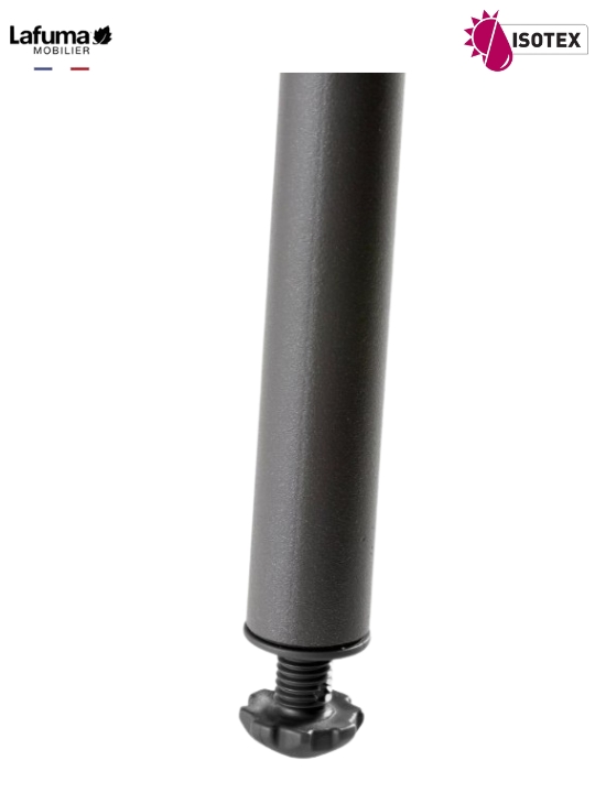 Structure : tube Ø 25mm en acier. Peinture 100% polyester haute tenue aux UV - Coloris titane