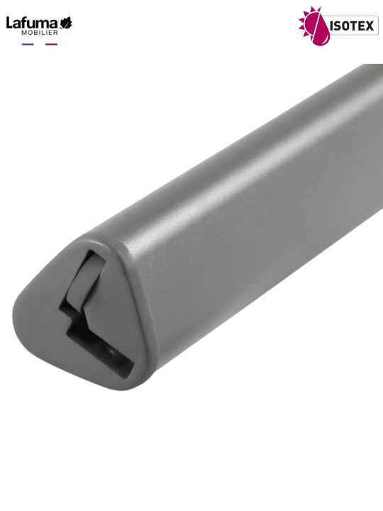 Structure : tube aluminium trilobé Ø70 mm, léger et ultra résistance à la corrosion. Peinture 100% polyester haute tenue aux UV - Coloris titane