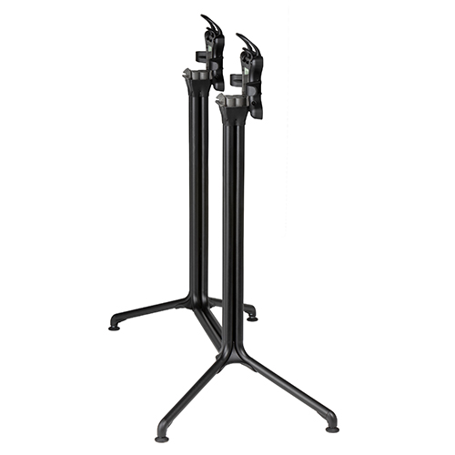 Le plateau en stratifié compact HPL d'une épaisseur de 10 mm assure une surface robuste et facile à entretenir, idéale pour un usage intérieur ou extérieur. L'innovation se manifeste avec son plateau basculant, grâce à un système de frein breveté sur le piètement, offrant une flexibilité unique pour répondre à vos besoins.