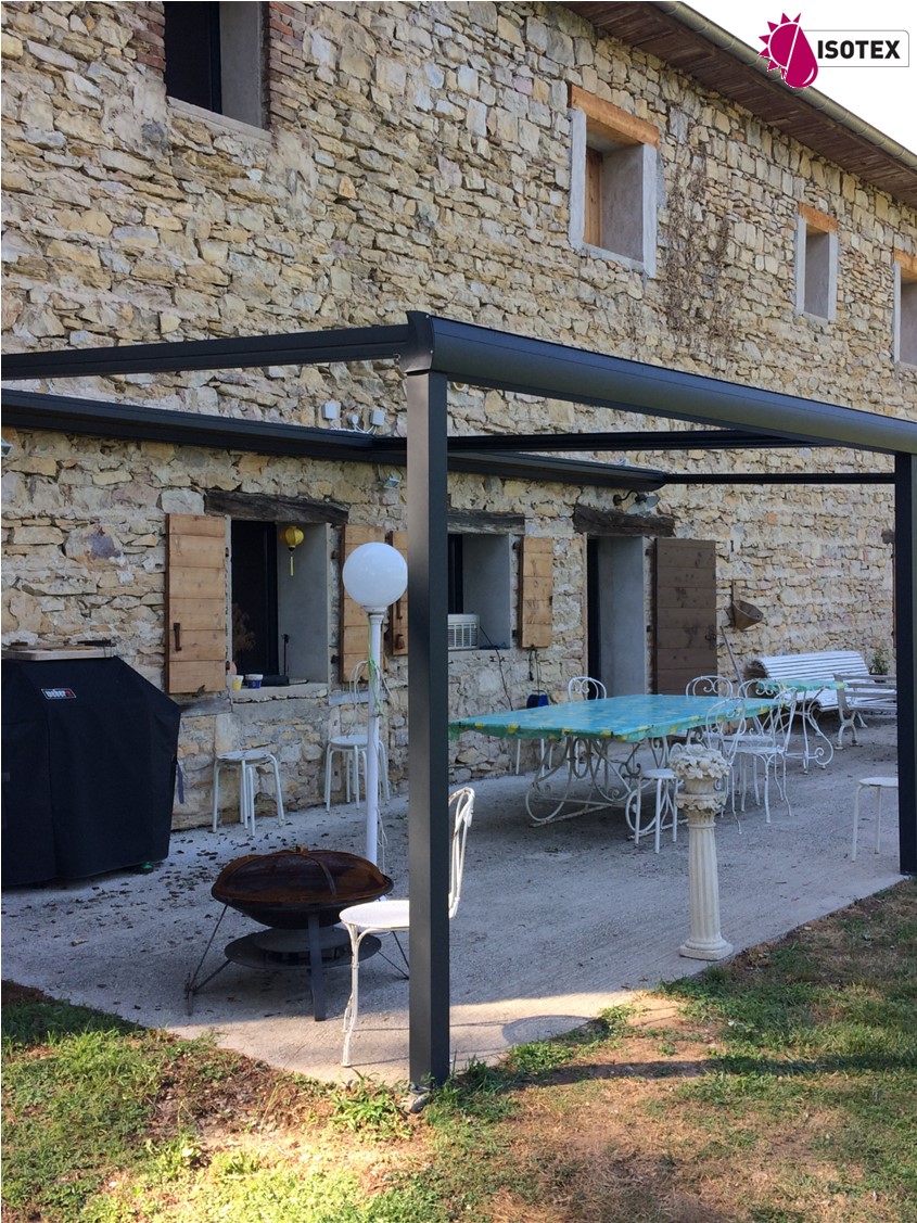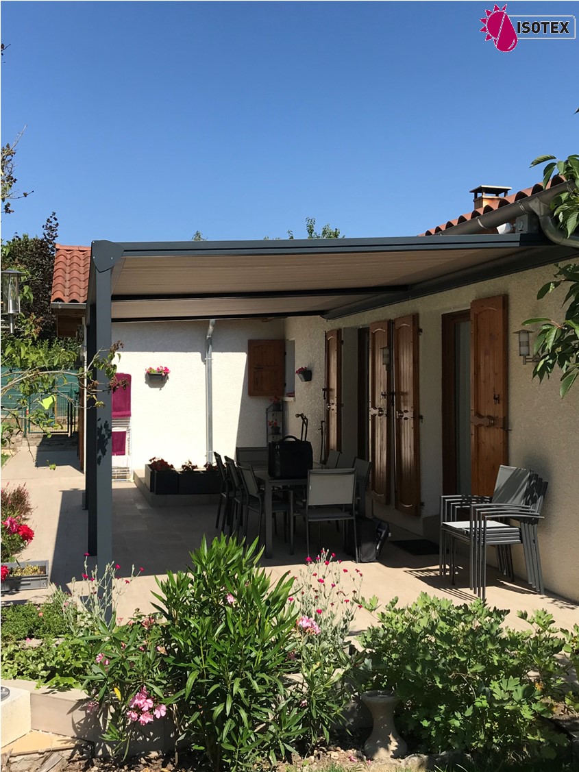 Pergola Toile Pergotoile : la pergola à toile enroulable. Fabrication sur mesure dans nos ateliers.