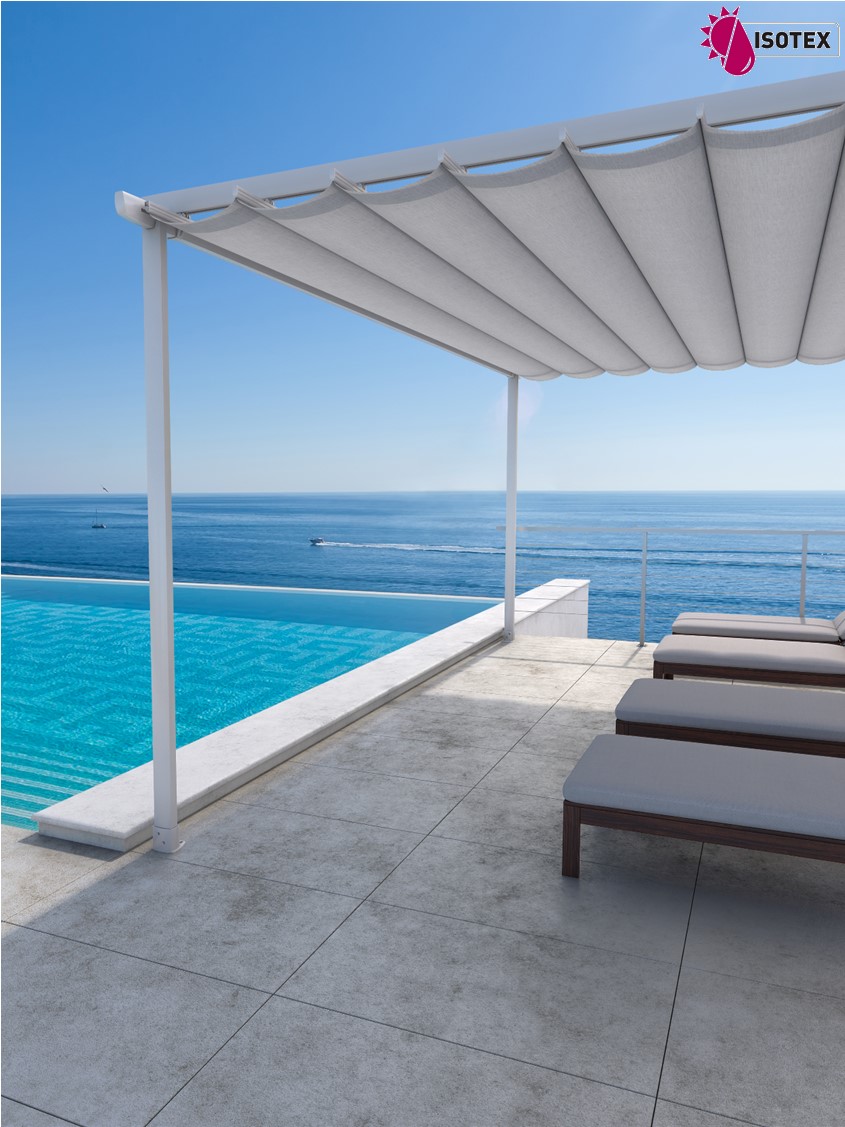 La pergola Velum Zen, solution idéale pour protéger du soleil de grands espaces, terrasses, patios, jardins...