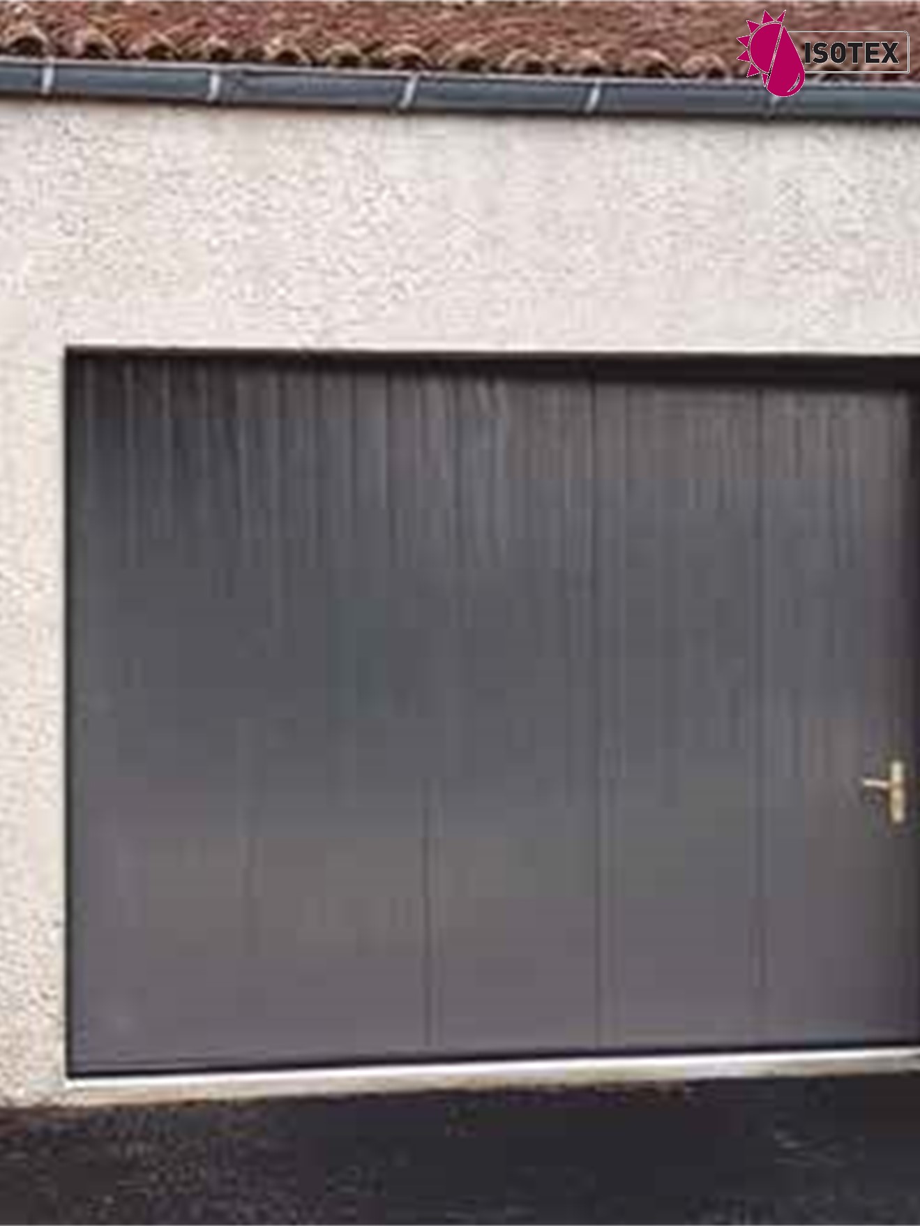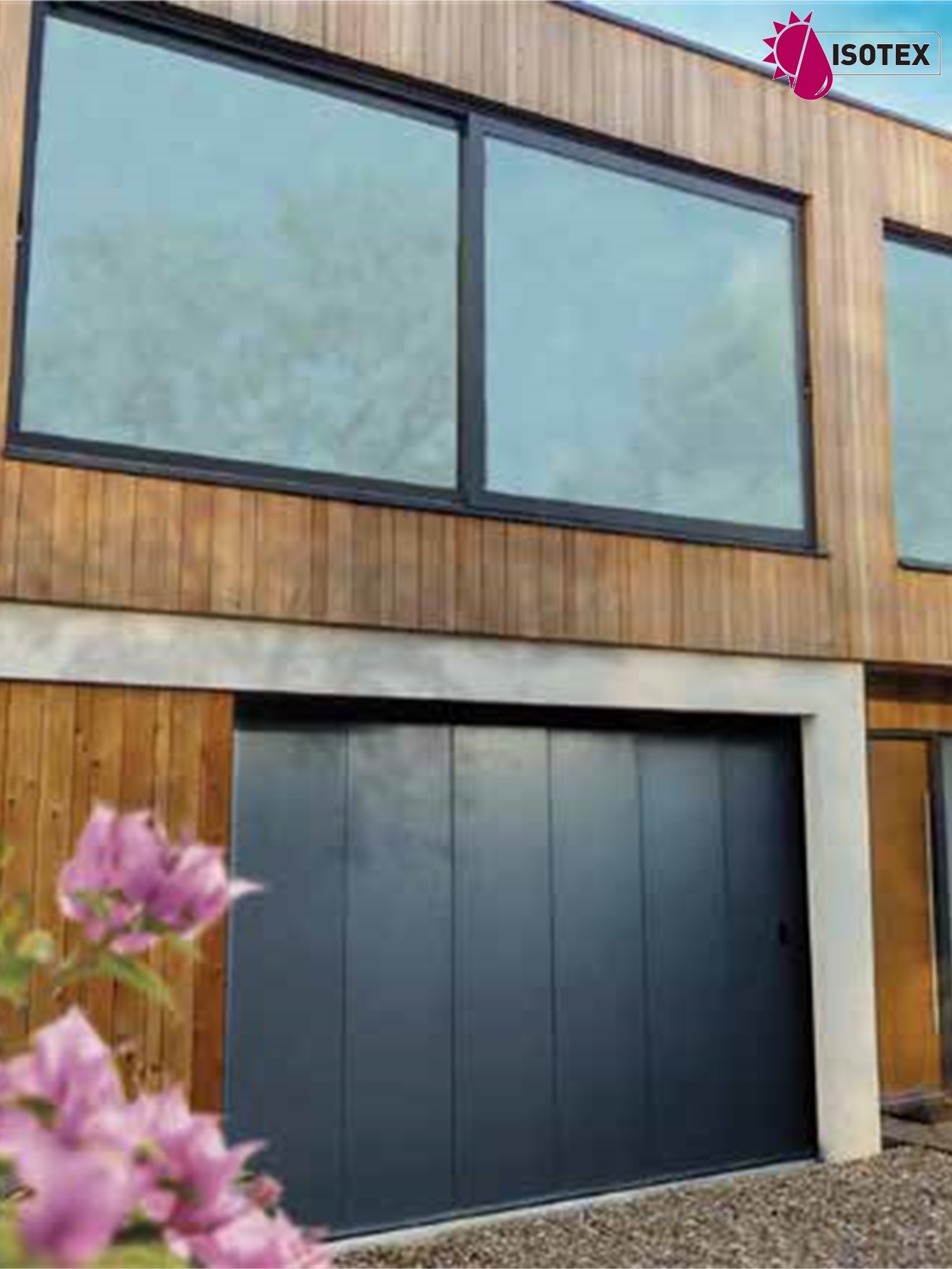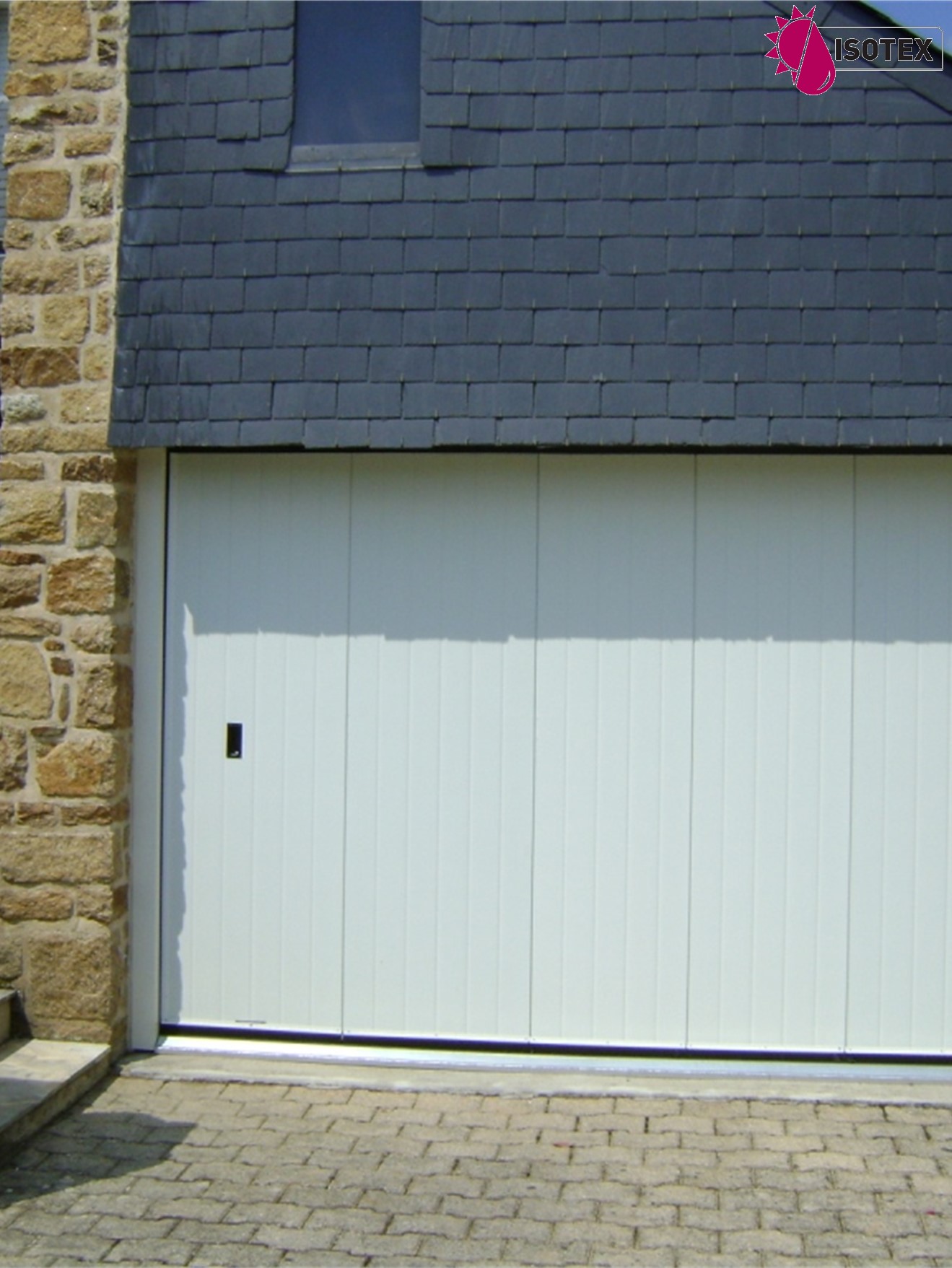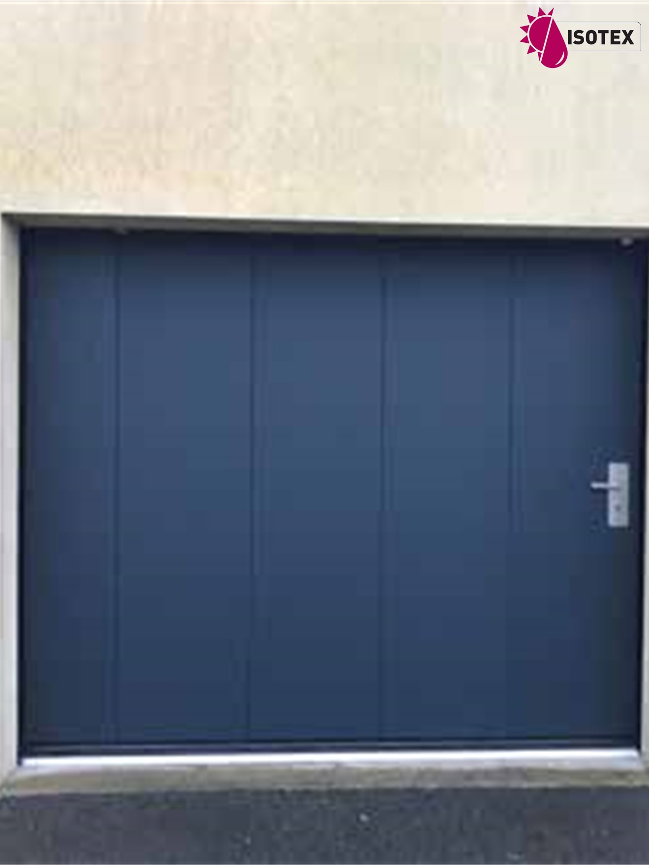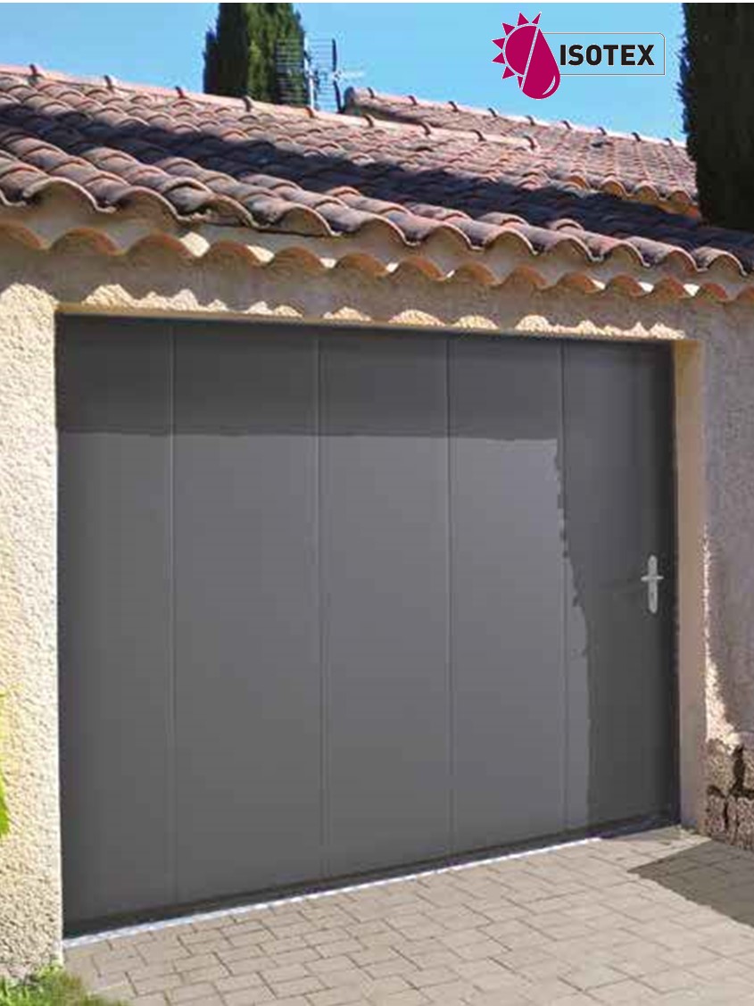 Porte de garage sectionnelle latérale : fabriquée en France sur mesure, libère l’espace au plafond et allie confort, sécurité et design. Ouverture silencieuse, motorisation Somfy, isolation thermique/phonique et économie d’énergie.