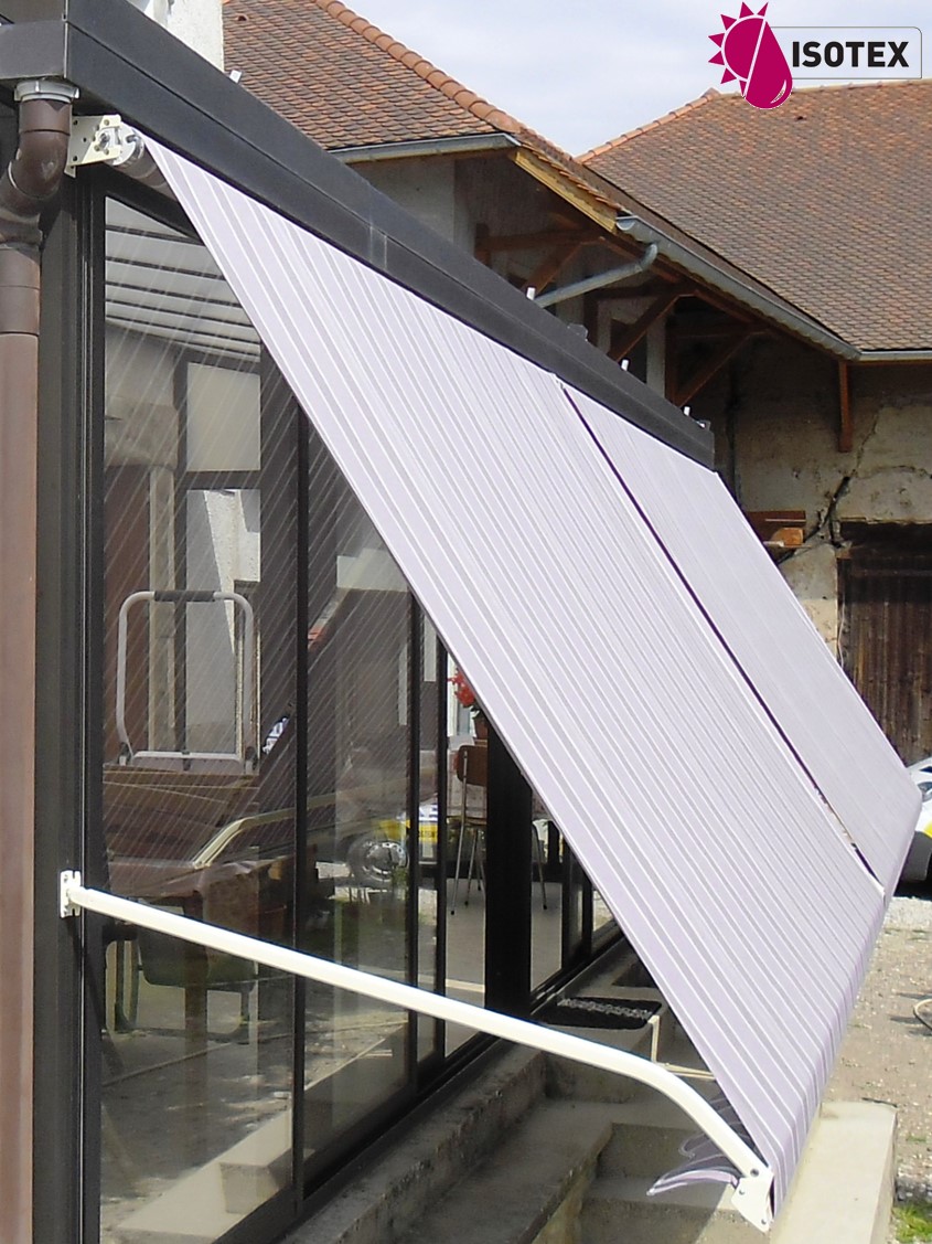 Store extérieur de fenêtre Isotex Ombrine. Fabriqué sur mesure dans nos ateliers
