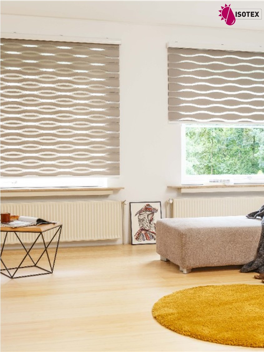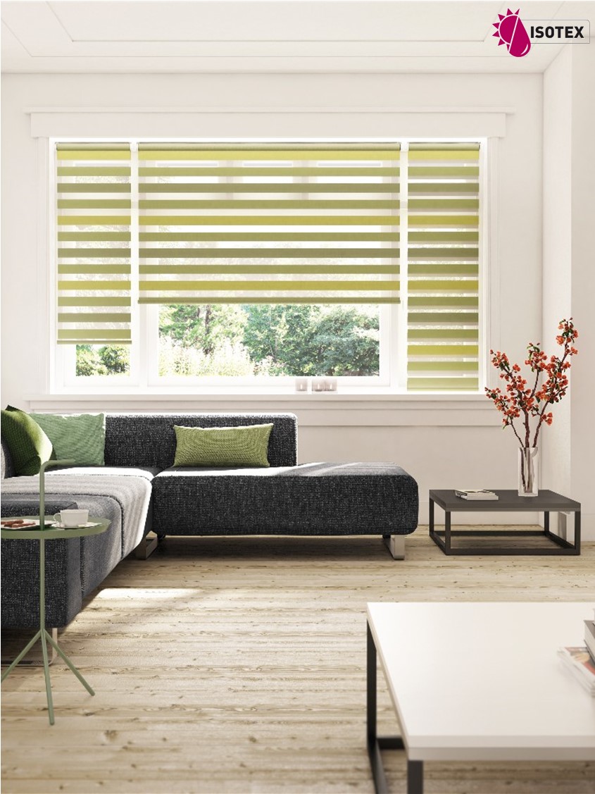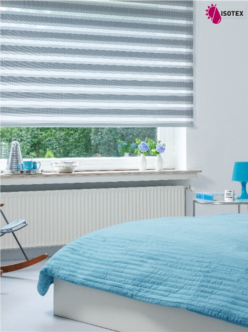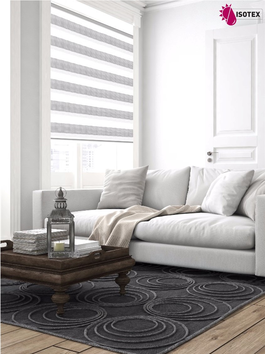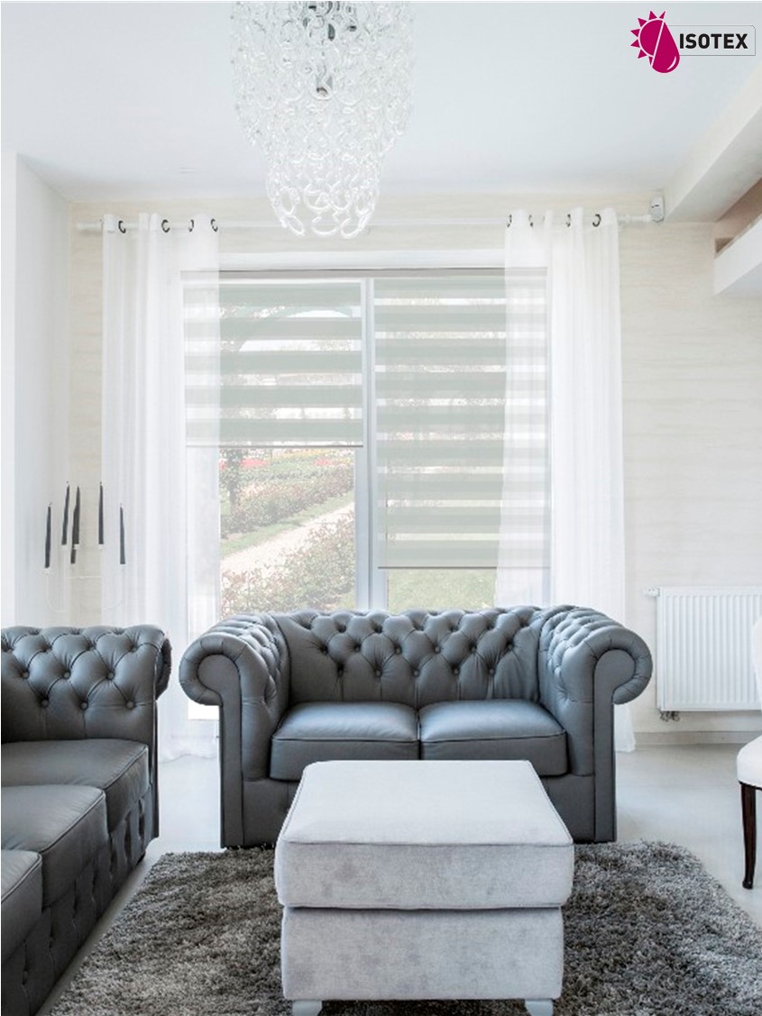 5. Bandes Horizontales de Tissus : Composé de deux bandes horizontales de tissus, l'une en voilage et l'autre opaque, qui défilent harmonieusement l'une devant l'autre. Ce mécanisme permet un dosage optimal de la lumière, offrant une ambiance personnalisée à tout moment de la journée.
