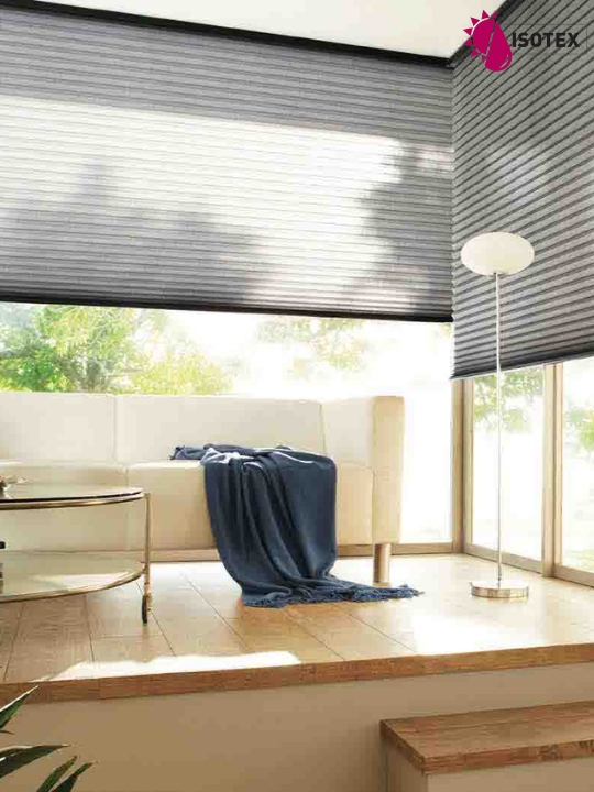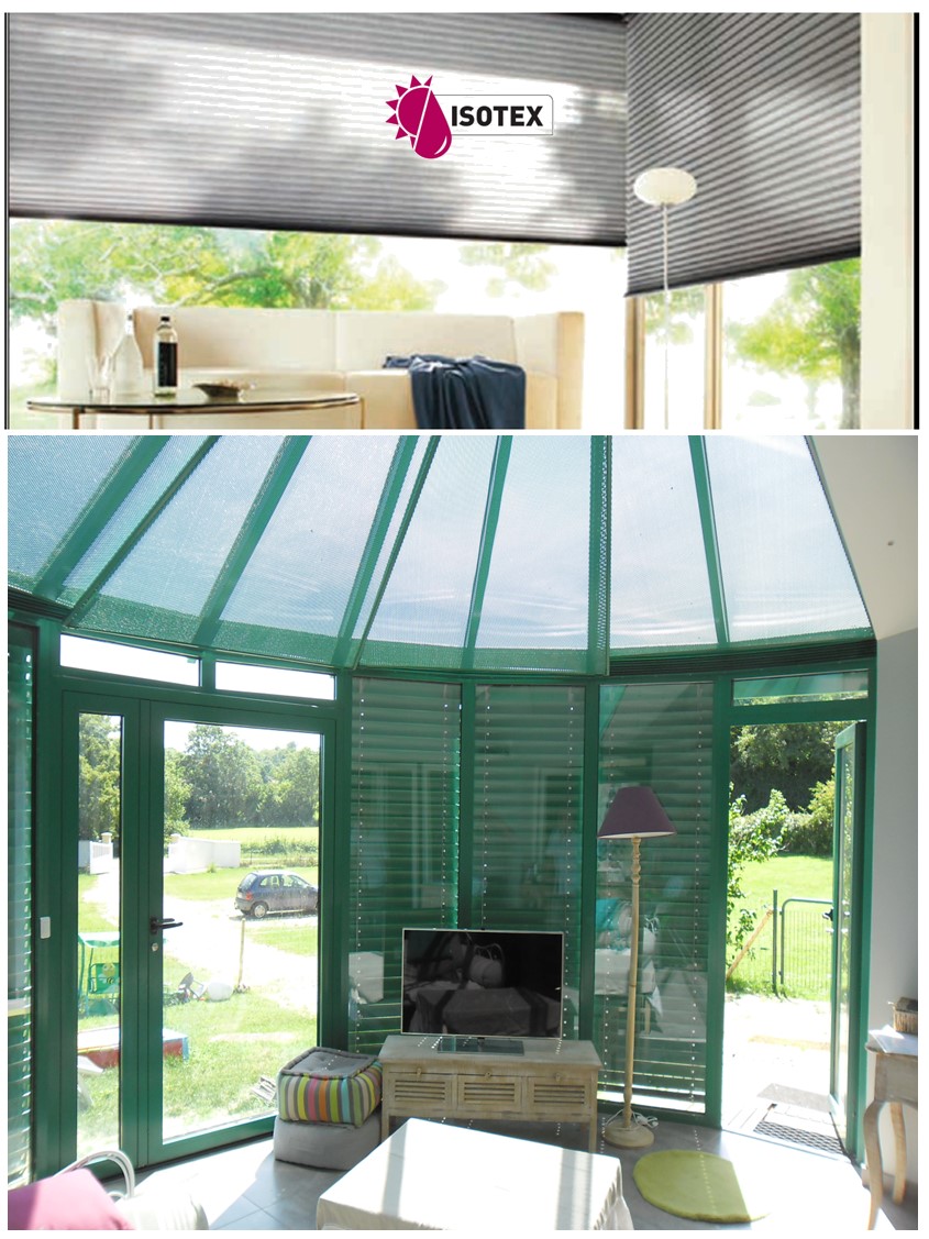Le store plissé tamise la lumière et protège de la chaleur. Fabrication sur mesure.