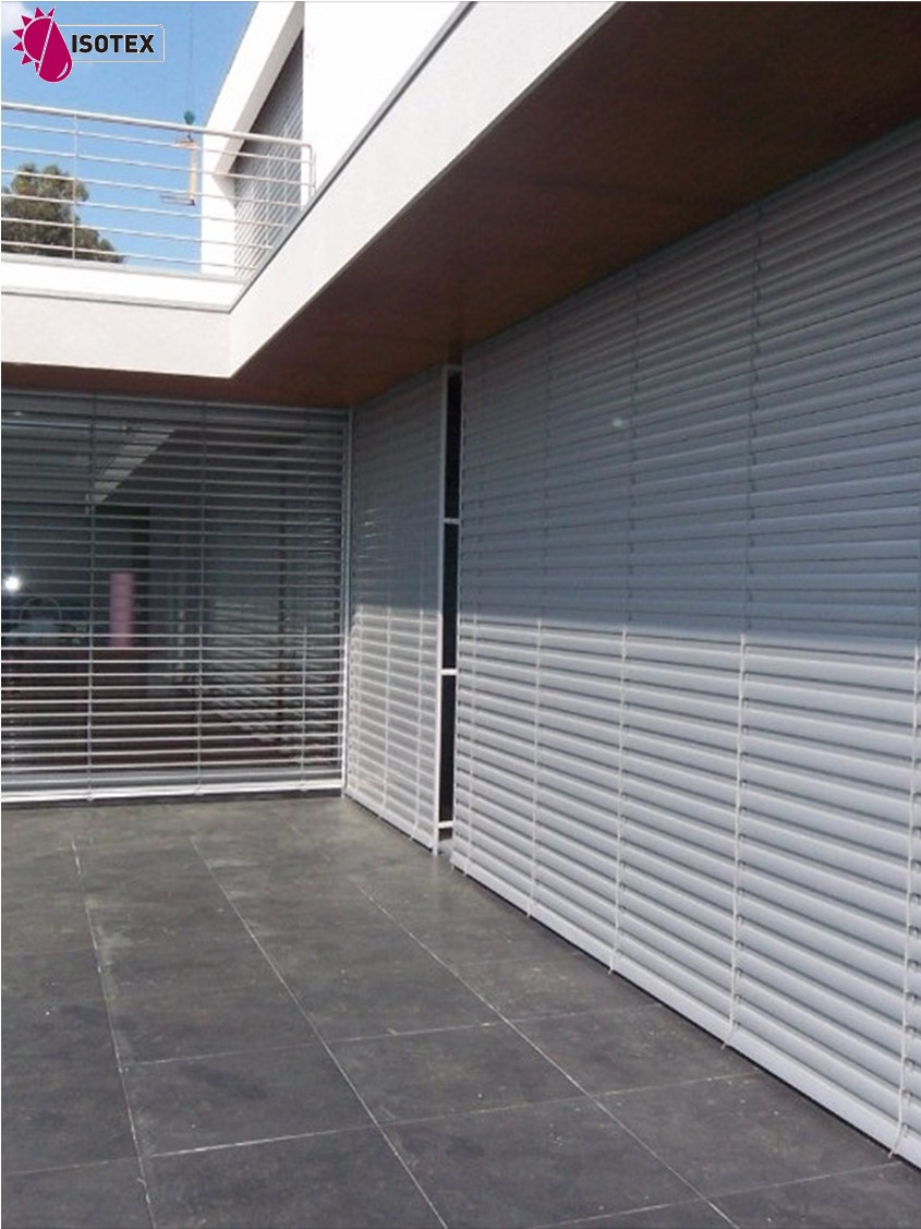 Doté de lames en alliage d'aluminium renforcées par un bord ourlé, le système garantit une durabilité exceptionnelle. Les rubans et l'échelle résistent aux UV et aux intempéries, assurant un fonctionnement fiable dans le temps.