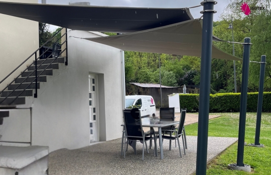 Isotex a réalisé sur mesure un ensemble de voiles d’ombrage Eliante Star à La Tour-du-Pin (38110). Toiles Soltis Serge Ferrari et poteaux acier thermolaqués pour un espace extérieur élégant et ombragé en Nord Isère.
