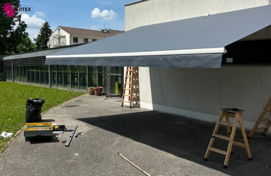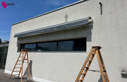Protégez votre terrasse près de Morestel (Isère) avec la réalisation d'un store extérieur Zénith sur mesure par Isotex ! Profitez d'une toile anthracite micro-aérée et d'une motorisation Somfy avec capteur de vent. Une solution esthétique et fonctionnelle pour votre confort en Nord Isère.